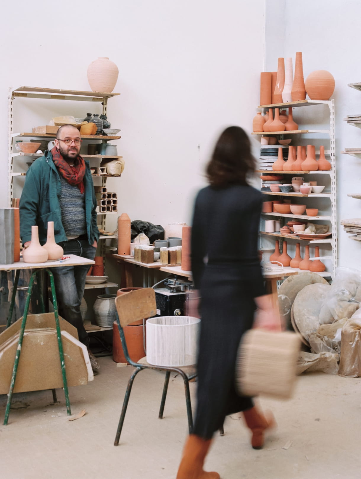 We went to visit their workshop in Maine et Loire, where Benoit gives shape to Aurélie's drawings by working with local clays, sourced from brick factories and small potteries in the area.