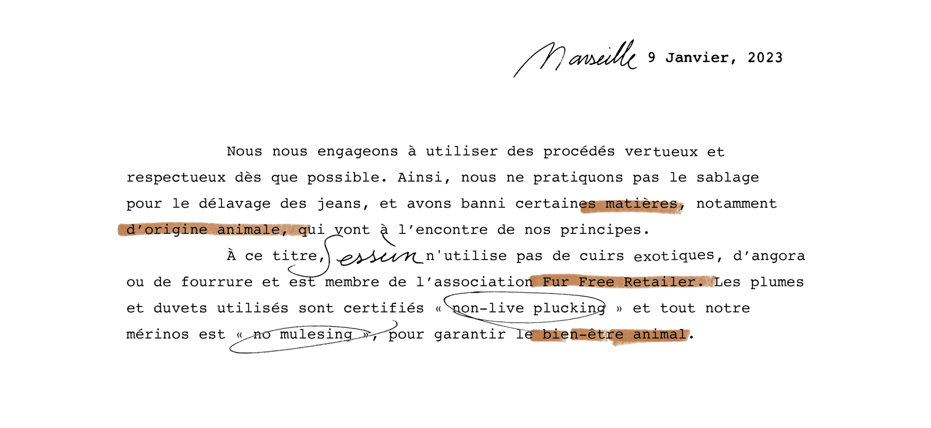 Materials are part of our history, our DNA. They are often what give birth to an idea, a model, a story. They tell the story of our know-how, our love of the garment... and its durability. That's why we choose them with the utmost care, while constantly questioning the impact of our choices. Several years ago, we decided to fully commit to transitioning to more responsible, less polluting fibers, produced under conditions that are more environmentally friendly and respectful towards people. We refer to them as lower impact materials. This year, we achieved 64% of lower impact materials in our collection.